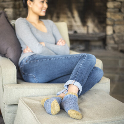 Berroco's Hartland Slipper Socks are handsome slippers that hit just above the ankle. Knit in Berroco Ultra Wool, a machine-washable worsted weight yarn, the most difficult part will be deciding how many pairs to make!