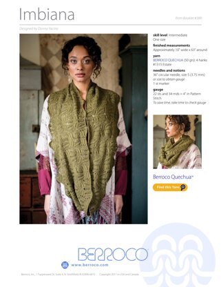 Berroco Imbiana PDF is a Knitting pattern by Donna Yacino, available as a Downloadable PDF. Super fun to make, this pattern could be your next masterpiece!