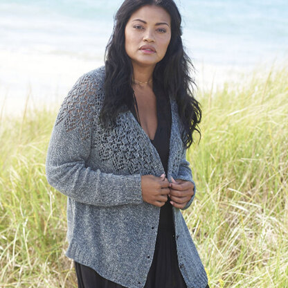 Ipswich is a fabulous women’s cardigan featuring a top-down lace yoke knit in