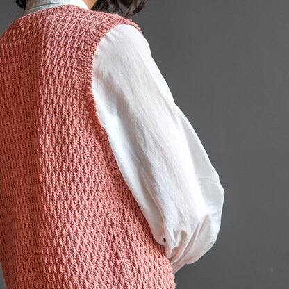 Berroco Lawler is a stylish crochet vest that will add extra warmth and color to outfits from casual to business casual with ease. The front and back are worked flat separately and crocheted together at the shoulders and sides. Tidy edgings are crocheted around the neck, armholes, and hem in a crocheted rib for a clean finished look. Berroco Spree is a soft blend of wool and cotton that's available in a wide range of solid and variegated colors and works up into comfortable garments you'll be excited to wear. Timeless style and cozy comfort are a dynamite combination that will shoot Lawler to the top of your must-crochet list!