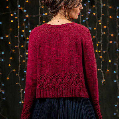 With an effortless elegance, Berroco Mahina is a cardigan that will be simple to dress up or down for virtually any event. This top-down cardigan has circular yoke shaping, a stockinette body, and gorgeous bands of lace decorating the hem and sleeves. The body is knit flat in one piece with stitches held off for the sleeves, which are knit in the round to the wrist. Your finished sweater will be velvety soft and warm knit in Berroco Renew, a feel-good and good feeling blend of recycled and sustainably sourced fibers. From charming pastels to rich jewel tones, Renew has a great palette of colors that makes it easy to find just the right one for you. Mahina adds graceful style to a wide range of outfits, and it will keep you cozy and comfortable too. Lace pattern is charted only.
