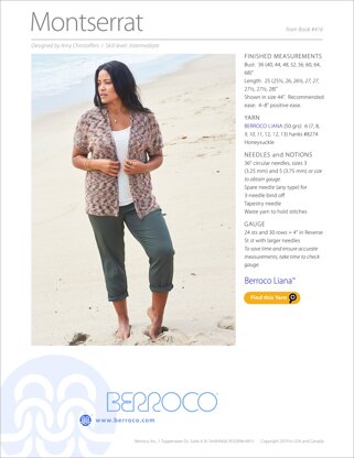 Berroco Montserrat PDF is a Knitting pattern by Amy Christoffers, available as a Downloadable PDF. Super fun to make, this pattern could be your next masterpiece!