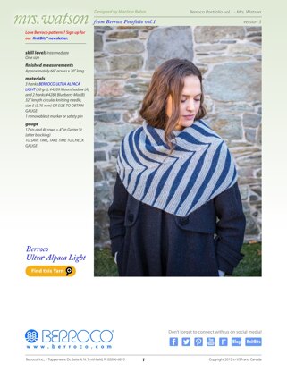 Berroco Mrs. Watson- Portfolio Vol. 1 PDF is a Knitting pattern by Martina Behm, available as a Downloadable PDF. Super fun to make, this pattern could be your next masterpiece!