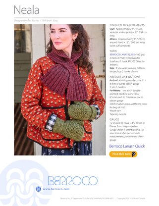 match the quick-to-knit keyhole scarf. The scarf is knit flat from end to end, and the mittens are worked from the bottom up seamlessly. Lanas Quick by
