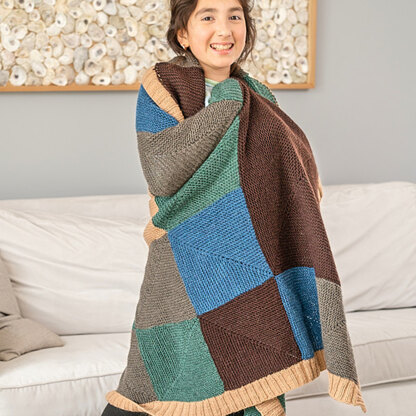 Penneech is a cozy and colorful blanket from the Berroco Portfolio Vol. 8 Collection that’s the perfect size for snuggling under for family movie night. Berroco Ultra Wool is a smooth superwash wool yarn that comes in a wide range of easy to mix and match colors perfect for customizing to your favorites. This project is great for knitting on the go with each square knit flat separately before being seamed together during finishing and framed with ribbed edgings. With a nod to snuggly quilts, Penneech has an assortment of different square sizes that combine to create a colorful patchwork vibe in the finished blanket.