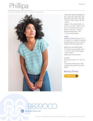Berroco Phillipa is a lovely women’s v-neck pullover with short sleeves, and