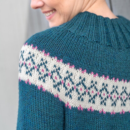 Projects that dovetail graceful design with functional warmth are always a delightful find, and Piquet from the Berroco Portfolio Vol. 8 Collection does just that. Knit seamlessly in the round from the top down, Piquet has deep ribbing at the collar, short rows at the back neck for a great fit, and a round yoke construction that sets up a striking stranded colorwork design. The adult version sports a statement sleeve that pulls in at the cuff to leave volume above the wrist while the children’s version has a more tapered sleeve for the best odds of staying mess-free. Either Berroco Ultra Wool and Berroco Vintage yarns can be used in this design, and both are machine-washable options that are soft, warm, and work up beautifully into cozy garments. Piquet will effortlessly pair with tights or leggings for kids and grow-ups alike, adding a cozy warmth and timeless style that will take you anywhere you need to go. Colorwork pattern is charted only.