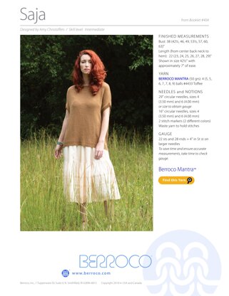 Berroco Saja PDF is a Knitting pattern by Amy Christoffers, available as a Downloadable PDF. Super fun to make, this pattern could be your next masterpiece!