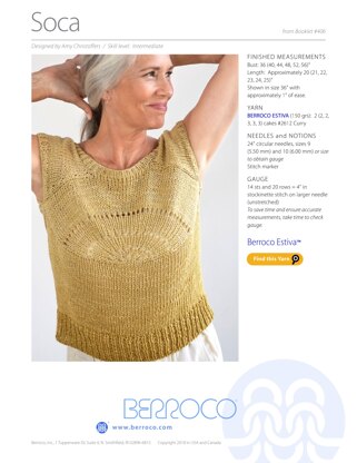 Berroco Soca PDF is a Knitting pattern by Amy Christoffers, available as a Downloadable PDF. Super fun to make, this pattern could be your next masterpiece!