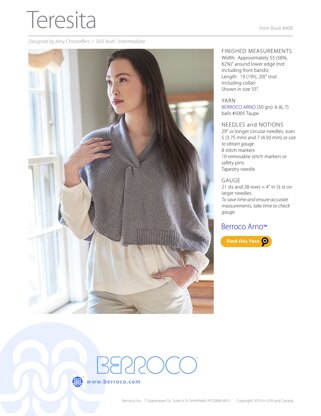 Berroco Terisita PDF is a Knitting pattern by Amy Christoffers, available as a Downloadable PDF. Super fun to make, this pattern could be your next masterpiece!