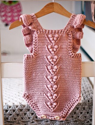 Rompers are great not only for cute photo shoots, but to keep your little one warm and comfy. It can be worn over a long sleeve body. For a tiny newborn you can use smaller crochet hook or lighter yarn, you can make shorter bib or/and shorter straps. If you omit the ruffles it could be perfect for boys too!