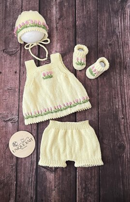 This pattern provides the instructions to make all 4 pieces and is suitable for a 0-3 month-old baby or a 16 - 22” Reborn doll.