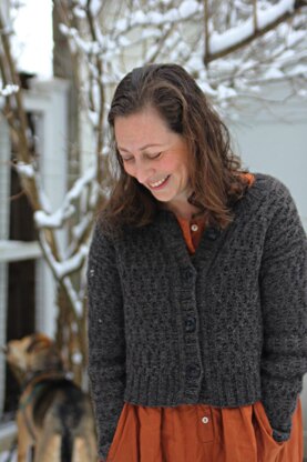 Cables and a cardigan are one of my favorite combinations of all. But add a farmy, wooly aran weight yarn and I'm just in. The pattern itself is simple, but lots of small details make this one special. Curved edges on each cable panel, details at side and under arm, and a transition from hem to body all create lovely little moments on this sweater.