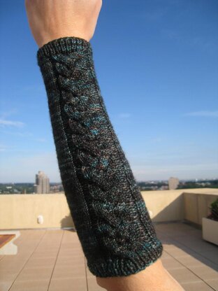 These cabled arm warmers will take you through all types of weather in warmth and style. The pattern includes arm shaping to ensure a sleek and snug fit to the arm. The center “arm” of the cable alternates direction to create an unusual cable that is interesting to knit. With its dark, blackish depths and glimmers of turquoise light, the name of this pattern was inspired by this particular colorway of Madelinetosh Tosh Sock yarn, but any fingering-weight yarn will work well for this pattern!