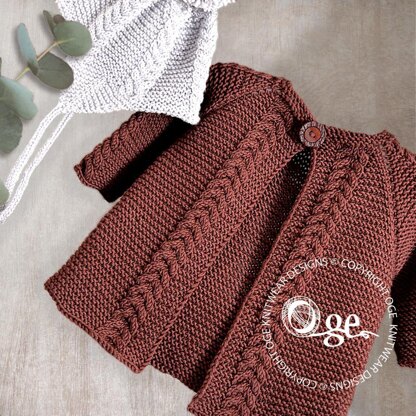 Coat - worked from the top down This stylish coat is worked in garter stitch with a simple cable pattern running down both fronts and down the middle of the sleeves, giving the knitter enough variation no to get too bored. Coat and hat would make the perfect warm and cozy cover-up for brisk spring or autumn days. Makes a great pop over coat and the style would be suitable for either girl or boy, depending on your colour choice. Please Note: Pattern comes with schematic and no seaming is required.