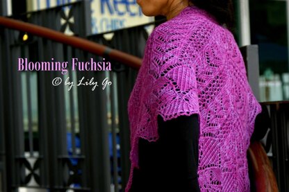 Blooming Fuchsia is a triangularish-shaped shawl worked from the bottom up. I named this shawl Blooming Fuchsia because the color of the yarn I used to knit this shawl is inspired by the color of blooming Fuchsia.