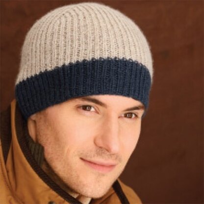 With a contrasting color brim and crisp ribbing that decreases as you knit into the crown, this hat in Blue Sky Fibers Sport Weight will fit snugly and keep any man, no matter his outdoor activity of choice, nice and warm.