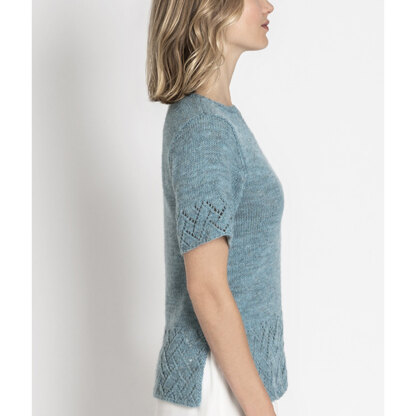 Yarn Requirements: 4 (5, 6, 6, 7) (7, 8, 8, 10) hanks Blue Sky Fibers Woolstok Light (100% Fine Highland Wool; 50g/218yds) shown in 2320 Spring Ice