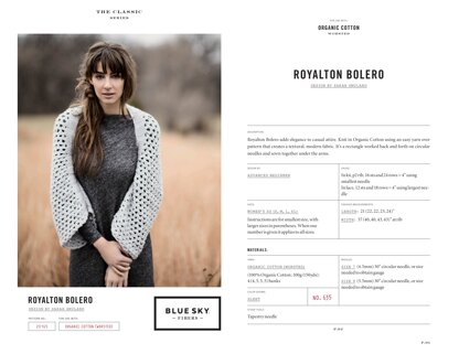 Blue Sky Fibers Royalton Bolero PDF is a Knitting pattern by Sarah Smuland, available as a Downloadable PDF. Super fun to make, this pattern could be your next masterpiece!