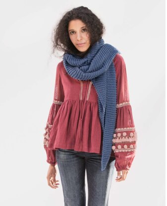 Blue Sky Fibers Waverly Wrap, a piece that simple and pretty. It is knit side to side, increasing every other row to the widest point and then decrease every other row. Knit in Blue Sky Fibers Organic Worsted Cotton, 100% organic yarn that is beautifully dyed. The color palette is simply gorgeous!