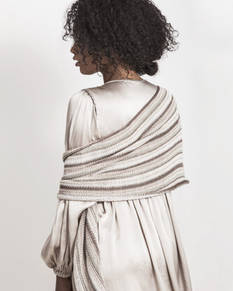 Blue Sky Fibers Windom Silk Wrap is made from the luxurious Alpaca Silk and Metalico yarns that are displayed to their advantage in this sumptuous wrap. This elegant, simple piece is knit sideways for long stripes of color and can be easily styled as either a scarf or a shawl.