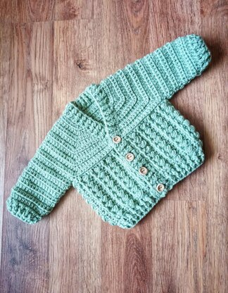 This cute chunky looking cardigan is made using a simple hdc (htc UK) stitch and bobble stitch for the body, it is quick and easy to work up.