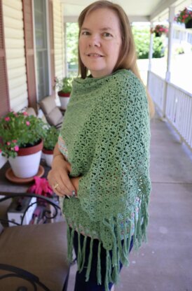 This is a delightful layer that is both beautiful and practical for the indoor air conditioning during the summer months or for anytime you need to ward off a chill. The stole is constructed using the Crow's Feet Lace and trimmed with knotted fringe.