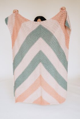 // Get cozy under the bold, geometric stripes of the Bradley Afghan. Made with bulky weight yarn, this throw blanket crochets fast so you can get the snuggle session on ASAP! A combination of the crochet linen stitch and a large chevron shape make this a fun project from the first stitch to the last.
