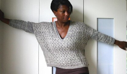 Construction The front and back are knitted flat from the bottom up. Once seamed, the sleeves are picked up and knitted in the round from the armhole downwards. The neck band is also picked up and knitted using a twisted rib. A quick and satisfying knit!