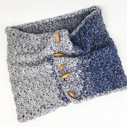Thick and tweedy this cushy cowl will keep you or a loved one warm on a cold winter’s night! The yarn shades gradually from one tweedy color to the next. Use neutrals like I did here or grab a brighter colorway to brighten up a dreary day.