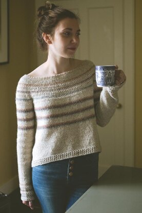 Sizes 31 1/2 (34 1/2, 37, 40, 43, 46 3/4, 49 3/4)”/ 80 (87.5, 94, 101.5, 109, 118.5, 126.5) cms at chest Recommended to be worn with approx 2-3 inches of positive ease Shown in size 37 inches with 3 inches of positive ease