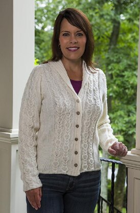 The body of this cardigan is worked in one piece from the bottom edge to the armholes, then back and fronts are worked separately to the shoulders. The sleeves are worked flat from the bottom up, then sewn into the armholes. The front bands/collar are worked at the same time as the body, and the collar is shaped at the shoulders using short rows, then joined at the back using 3-Needle Bind-Off and sewn along the back neck edge.