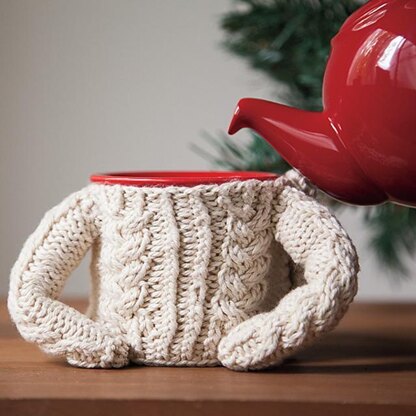 For those blustery days when even your coffee (or cocoa!) needs a bit of help staying warm, button your mug into this twee-sized cardigan. Complete with sleeves and cables, you’re sure to have the most stylish beverage at the party.