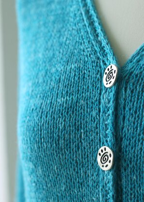 Cajsa is a cropped, casual Ziggurat that knits up quickly in a cool blend of silk and linen for summer, and woollier blends for all year. Like all Ziggurats, Cajsa is knitted top down with contiguous sleeve caps, built-in button bands, and (quite intricate) double-knitted pockets. An alternative simpler inline pocket is suggested for knitters who want to coast. The 3/4-length sleeves are sweetly notched.