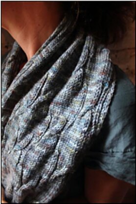Designing in a more vareigated colorway was a fun exercise, and Kim's yarn is just beautiful. I chose a simple undulating cable to show off the gorgeous variation in the subtle greens and blues for this one. Lots of stockinette and geometric, repeating lines.
