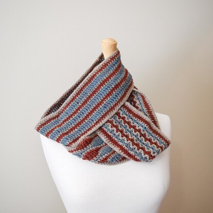 The Triangle region of North Carolina inspired this trio of versatile cowls. Raleigh features upright stitches that reflect the traditional vibe of the state capitol. Durham’s pattern repeat highlights the wave that marks that city’s transition from mill town to funky town, while the stitch pattern in Chapel Hill suggests the argyle synonymous with this buttoned-down college town.