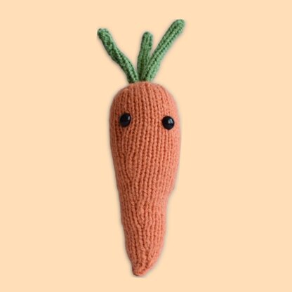 Introducing my Carrot knitting pattern. Knitted veggies are super toys to encourage little ones to eat veg and greens, or you can use them as decorative items in your home. My veggies are worked flat, but most pieces could easily be converted to knitting in the round if that is your preference. You will also need to cast on and off, knit, purl, work increases and decreases, and sew seams.