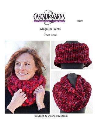 The Uber Cowl by Cascade Yarns is a super bulky, super-cozy treat! It includes options for a short version, as pictured, and for a long version which can wrap arund multiple times. Cascade Magnum is 100% wool, but so soft and lofty. This cowl is the perfect accessory to keep you warm this winter.