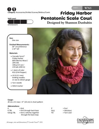 Cascade Yarns W763 Pentatonic Scale Cowl (Free)