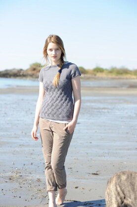 The sample shown was knit in Quince & Co. Lark, shade Storm.