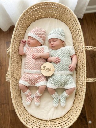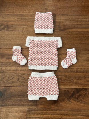 The hat and shorts are both knitted from the bottom up and the little socks are knitted from the top down on straight needles, again with line-by-line instructions and no fiddly calculations to work out it’s all written out in the pattern which makes this pattern very easy to follow.