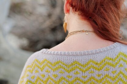 This boxy drop-shoulder design is the perfect combination of color & technique to keep you excitedly knitting “just one more row” from top to bottom. Enjoy a colorblocked background–gradient-inspired as shown, or whatever colors call to you–paired with angular stranded colorwork throughout or work it with a single background color. This pullover is worked from the top down, in the round, with steeked armholes. Because the steeking takes place over just two short sections, it is an excellent first steeking project; don’t fear the steek! Pattern features options for a Cropped or Longer length, yardages for a 4-color (shown) or 2-color sweater, an abundance of links to relevant tutorials along with incredibly thorough notes to help you set up your project, understand the construction & achieve the fit you want even if your ease differs from the recommendations.