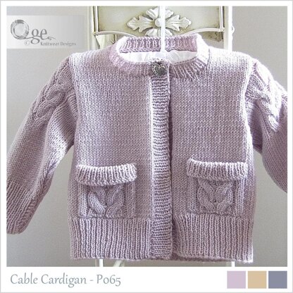 Child’s Cardigan with cable detail on sleeves and pockets - P065