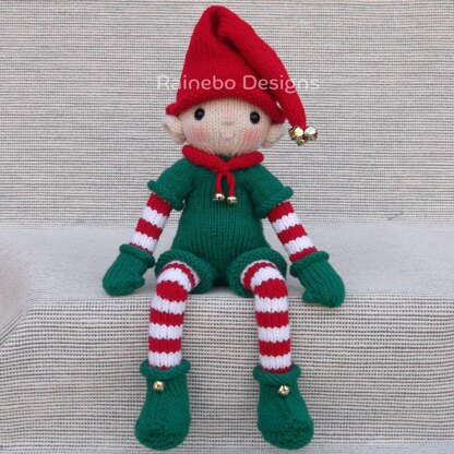 This Christmas Elf, with his darling face, is knit in-the-round, and the arms, legs, body and head are all one piece. Sitting approx. 10” tall, Christmas Elf is worked in worsted wt. (Aran/10-ply) yarn, using approx. 270 total yds...Green (100 yds.), Red (100 yds.), White (30 yds.), Skin Color (40 yds.) He’s a wonderful Christmas decoration, ready to sit on a ledge or shelf and enjoy the holiday season.
