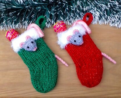 These Mini Stockings are adorned with a peeping mouse and make adorable Christmas tree decorations and festive table favours filled with sweets and treats.