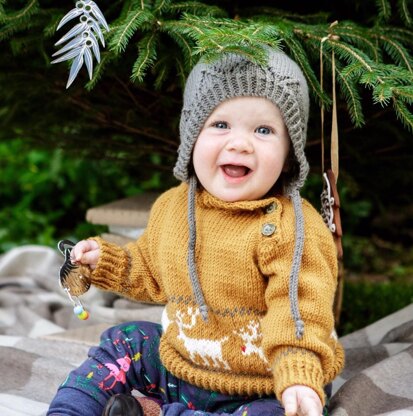 This festive jumper for babies is perfect for a babies first Christmas and comes with a co-ordinating traditional bonnet. I made it in Debbie Bliss Cashmerino but a finer double knitting with a similar tension would work well too. The jumpers are knitted in parts and have abutton fastening so no tight stretching over little ones’ heads. The colourwork is effective but simple enough for a beginner to tackle. The final touch to add even more cuteness is red or contrasting noses that are sewn on at the end.