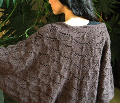 Textured lace in an easy cocoon. Knitted in one piece from side to side.