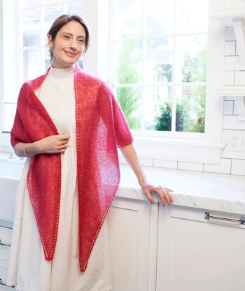 “Play with degrees of sheerness.” The relaxing rhythm of stockinette stitch creates a simple, supple fabric—the perfect canvas to play with degrees of sheerness. Adding a feminine eyelet lace edge keeps the knitting interesting. With long tapered ends, this scarf’s shape lies somewhere between half moon and triangle. Started at the top edge, the knitting gets faster and faster as you go!