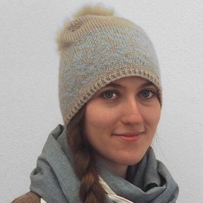 24 sts = 4“ (10 cm) in fair isle pattern, using the larger needle