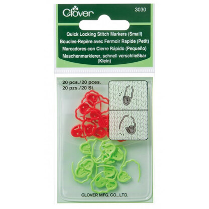 The Quick Locking Stitch Markers from Clover are brightly-colored plastic locking stitch markers that come in 3 sizes. These snag proof stitch markers have an undulating shape (resembling sheep!) that helps prevent stretching of knitted stitches. The Small and Medium sizes each come with 20 markers, while the Large comes with 12. These stitch markers are also available as a set here.